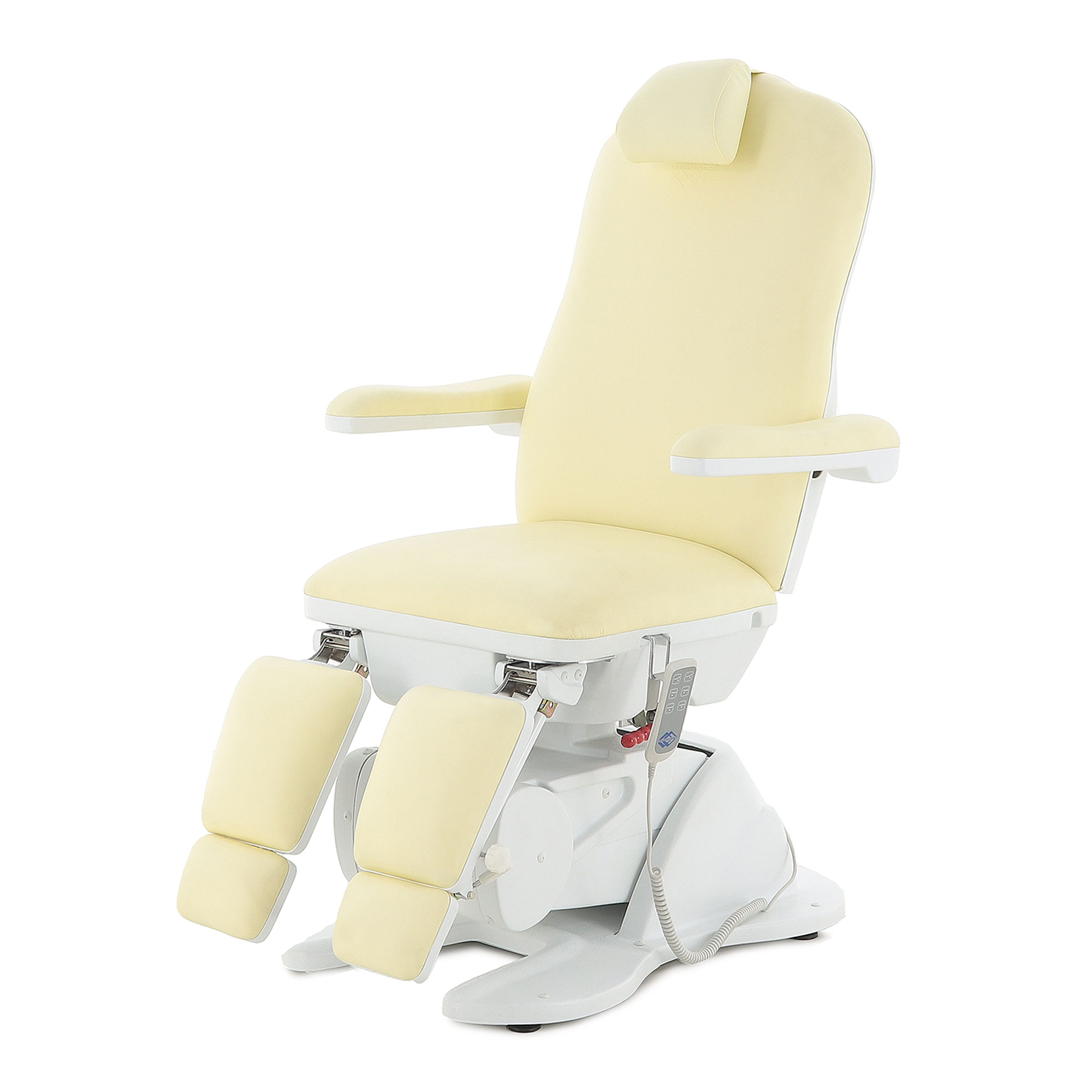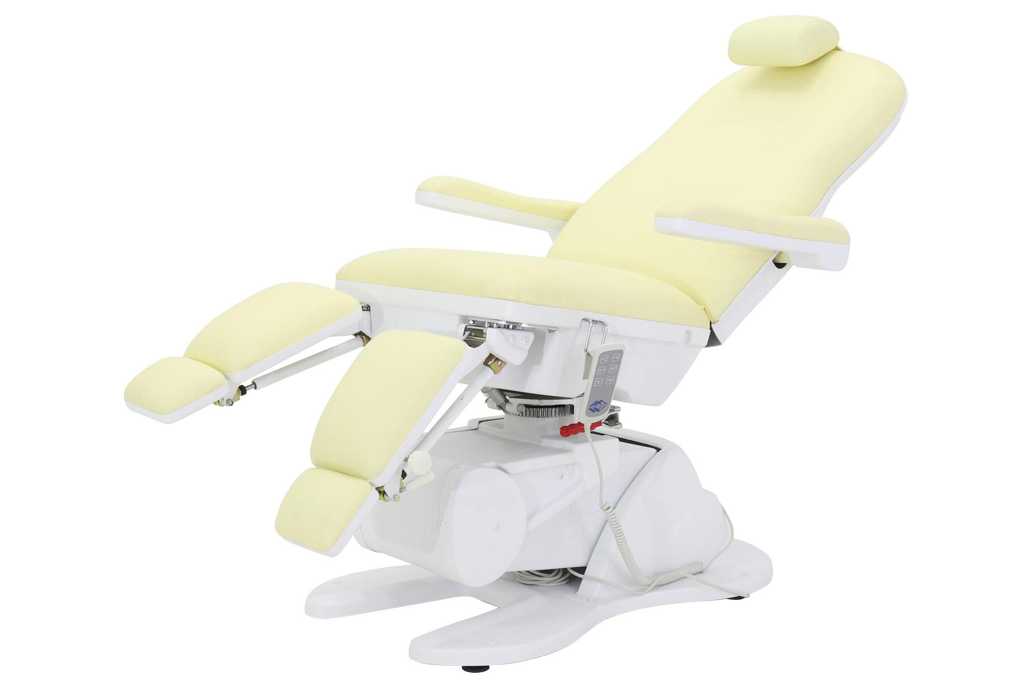 - Кресло имеет семь секций, которые можно регулировать по углу наклона и положению. Это позволит подобрать наиболее комфортную позу для конкретной процедуры.